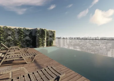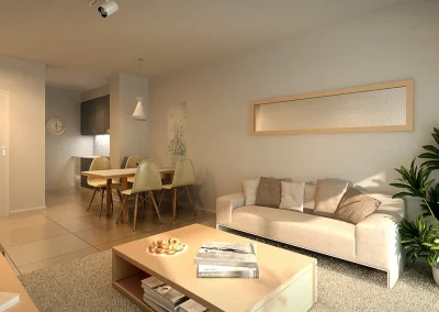 Todas las unidades están equipadas con mesadas simil silestone, equipo individual de aire frío-calor en todos los ambientes,